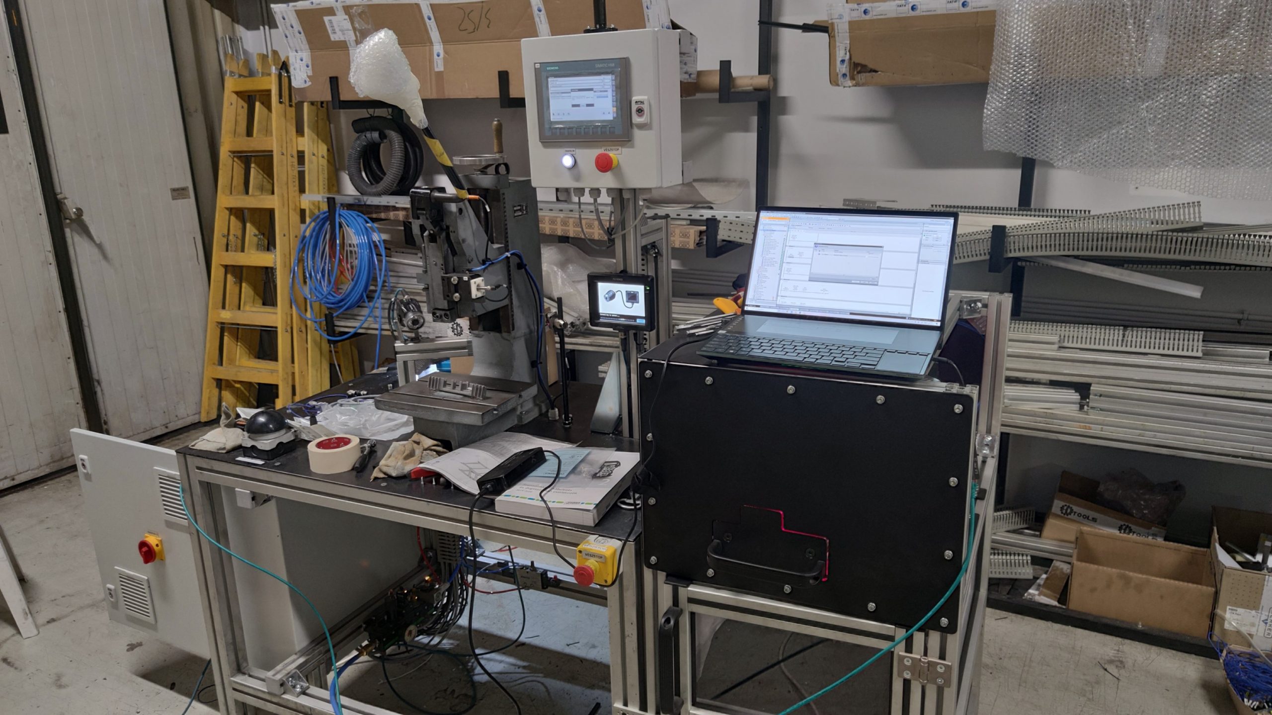 A berendezés két egységből áll, az általunk átalakított gátolt kézi préselő állomásból, és egy egyedileg tervezett és kivitelezett ellenőrző-selejtező állomásból.